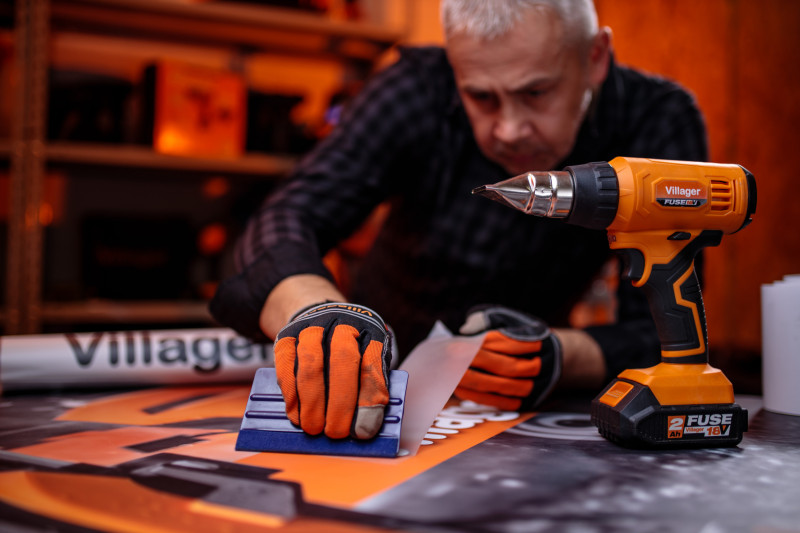 Uređaj je u okviru nove Villager serije uređaja VILLAGER® FUSE™ serije aku alata. Čitava VILLAGER® FUSE™ serija uređaja je okupljena oko jedne baterije i punjača, tj jednu bateriju možete koristiti na svim uređajima iz FUSE aku serije alata. Villager® FUSE™, nova linija proizvoda je opremljena naprednim PC boardom, koji pruža visok nivo zaštite i sigurnosti baterije i samog uređaja. Indikator problema koji je sastavni dio PCB-a štiti uređaj od prekomernog punjenja i pražnjenja, zagrevanja i oscilacija napona. Upotrebom samo jedne baterije i punjača lakše ćete organizovati i Vaš radni prostor. Manje baterija i punjača znači odmah svakao i manju upotrebu sirovina i manju proizvodnju električnog otpada. Napredna tehnologija i pravilna upotreba i održavanje garantuju dug životni vijek uređaja i baterije. Odsustvo strujnog kabla garantuje veću slobodu pokreta u radu. Fuse 18V baterije su zasnovane na Li-Ion tehnologiji i do tri puta dugotrajnije u odnosu na Ni-Cd baterije sličnih karakteristika. Fuse 18V bateriju možete odložiti na nekoliko mjeseci bez bojazni da će doći do pražnjenja i gubitka snage. Ove baterije pokazuju gotovo identične performanse na početku i kraju svog radnog vijeka. Bateriju možete puniti bilo kada i bez obzira na stepen ispražnjenosti i bojazni od gubitka kapaciteta. Kupovinom jedne baterije (u nekim slučajevima dvije-ukoliko mašina koristi dvije baterije) i jednog punjača štedite pri kupovini svakog sledećeg FUSE alata, jer ćete kupiti samo alat (bare tool) i time izbjeći nepotrebne troškove kupovine novog seta baterije i punjača, a samim tim i uštedjeti na prostoru u Vašoj radionici. Villager FUSE VLN 9520 je industrijsko sušilo prikladno za poslove u radionici i domaćinstvu, kao alatka koja je neophodna za pripremu radnih površina. SOLO MODEL – aku bušilica se isporučuje bez baterije i punjača