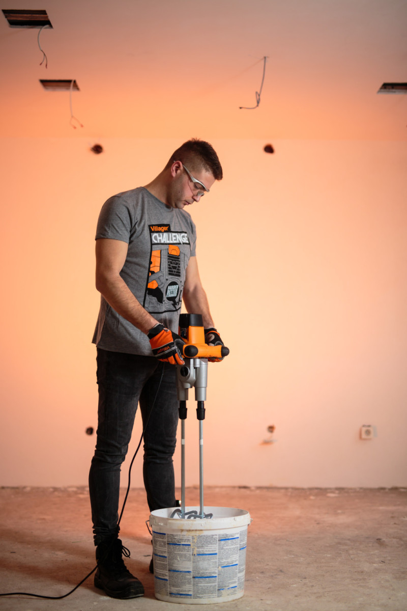 Ovaj uređaj je napravljen za miješanje tečnih i praškastih građevinskih materijala kao što su boje, malter, lijepak i slične supstance.