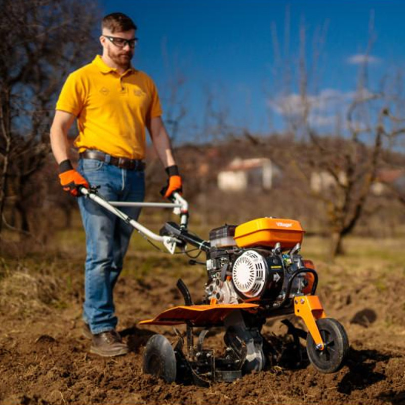 Proizvođač Villager Model VTB 842 Prime Snaga Efektivna radna snaga: 4.0 kW - 5.5 KS Max. snaga motora: 5.13 kW - 7 KS Zapremina motora 212 cm³ Motor 4-taktni, vazdušno hlađeni, EURO5 Radna dubina 15 - 30 cm Radna širina 85 cm Broj rotora (motičica) 6 Broj brzina naprijed 2 Broj brzina nazad 1 Prenosni sistem Kaiš + lanac Pogonsko gorivo Bezolovni benzin Zapremina rezervoara goriva 3.6 l Zapremina rezervoara ulja 0.6 l Točkovi Gumeni Težina 68 kg Dodatne informacije Podesivi rukohvat po visini sa prednjim točkom i 3.5 - 6 gumenim točkovima Isporučeni pribor Gumeni točkovi Rotori/noževi za frezanje