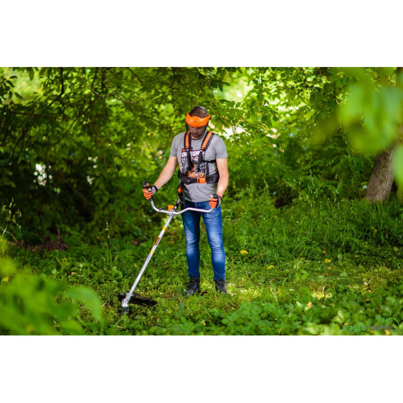 Za lijep i njegovan travnjak. Motorni trimer sa dvotaktnim motorom snage 1.9 KS, težine samo 7.7 Kg, omogućava Vam da redovno, sa lakoćom radite na održavanju Vašeg travnjaka. Pri radu obavezno koristite zaštitnu opremu.